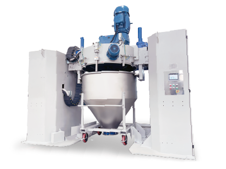 LCM系列翻轉(zhuǎn)式自動(dòng)混合機(jī)LCM系列混合機(jī)采用可移動(dòng)式料斗,適用于各種粉末及粒狀材料的混合攪拌。裝有待混合原料的料斗推到工位后,自動(dòng)控制系統(tǒng)將其提升,與攪拌頭(可配置冷卻水套)安全鎖定。料斗與攪拌頭一起翻轉(zhuǎn) 180 度,在攪拌槳和破碎輪的作用下,完成對(duì)物料的攪拌和混合?;旌贤瓿珊?,料斗自動(dòng)回到原工位,與攪拌頭分離。