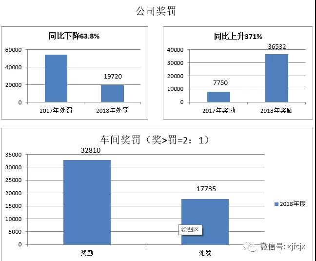 為了激勵(lì)員工時(shí)刻圍繞公司的核心價(jià)值觀,鼓勵(lì)員工奮發(fā)向上,促進(jìn)企業(yè)不斷完善改進(jìn),做到獎(jiǎng)罰分明,堅(jiān)持以獎(jiǎng)勵(lì)/處罰=2:1原則,公司制定了《公司獎(jiǎng)罰管理制度》和《車間獎(jiǎng)罰管理辦法》,雙管齊下,2018年相比2017年獎(jiǎng)勵(lì)金額同比上升371%,處罰金額同比下降63.8%,違章次數(shù)同比下降69.7%,管理上有了很大的提升,數(shù)據(jù)體現(xiàn)如下: