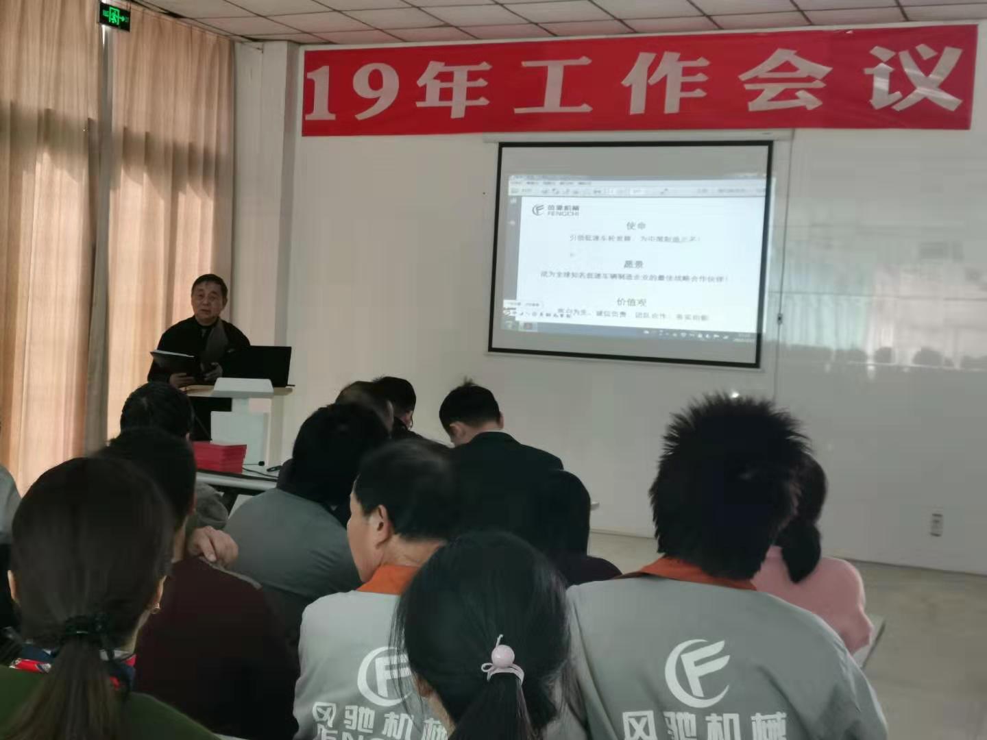 會議由風(fēng)馳車輪公司副總經(jīng)理陳景賢主持,總經(jīng)理李正華總結(jié)了2018年的工作,部署2019的任務(wù)。李總在會上提到在美國發(fā)起貿(mào)易戰(zhàn),經(jīng)濟下行壓力增大的嚴峻形勢下,車輪公司經(jīng)過全體員工的共同努力,取得銷售增長二成的好業(yè)績,開發(fā)了鋁輪和工程圈兩項新產(chǎn)品,為今明兩年的發(fā)展打下扎實的基礎(chǔ)。2019年,我們更要凝心聚力,乘勝前進,出色完成“營業(yè)收入2500萬元,利潤指標9%,每萬元產(chǎn)值工資含量不超過14.5%,客戶投訴少于15起,有等級的工傷事故0起”的年度計劃目標,以此來感謝總公司的扶持和關(guān)懷。